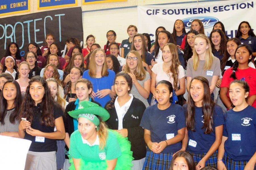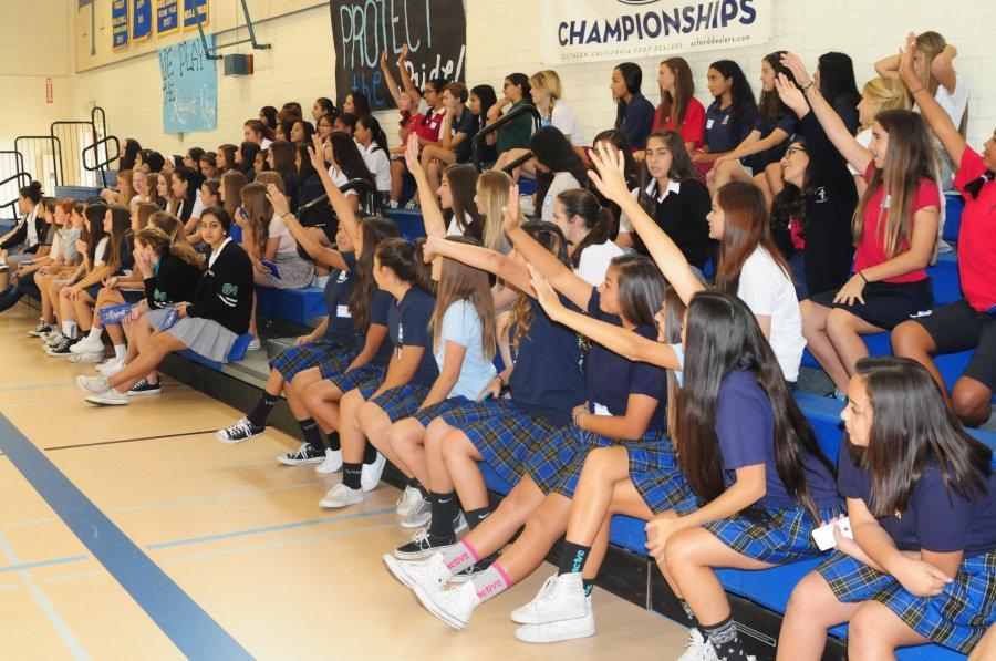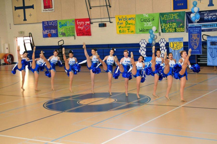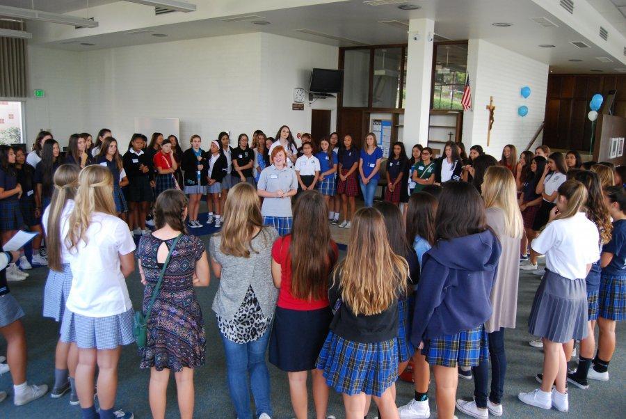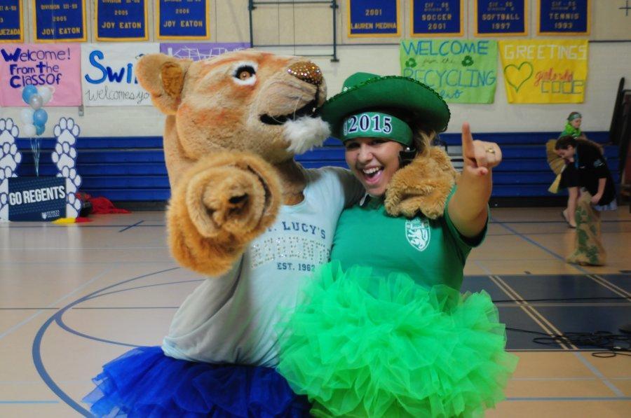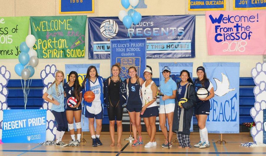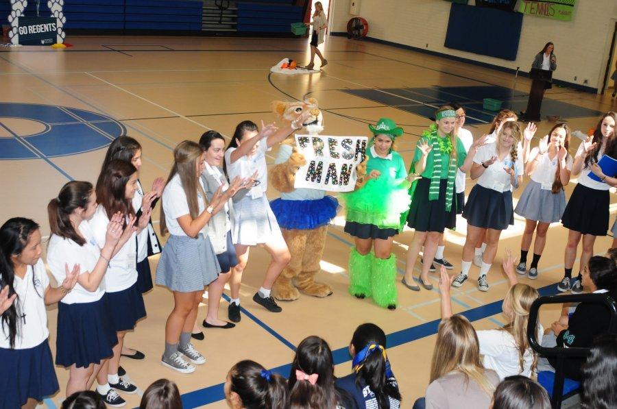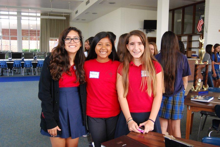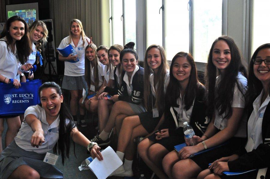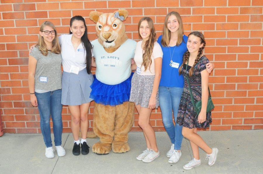 On Tuesday, October 14, 2014, 64 students from 22 different private and public junior highs attended a St. Lucy’s Shadow Visit to experience firsthand what it is like to be a St. Lucy’s Regent. The girls were hosted by 5 seniors, 8 juniors, and 1 sophomore. They received a tour of the campus, met teachers and students, attended a special assembly, and enjoyed a delicious pizza lunch. The visit concluded in the Regent Resource Center with a Parent Q & A Session where families met the Administration, Dean of Curriculum, Athletic Director, and the Director of Public Relations and Enrollment. We hope to see these girls again at the Middle School Pre-Game BBQ hosted by the tri-school community.