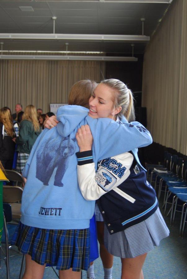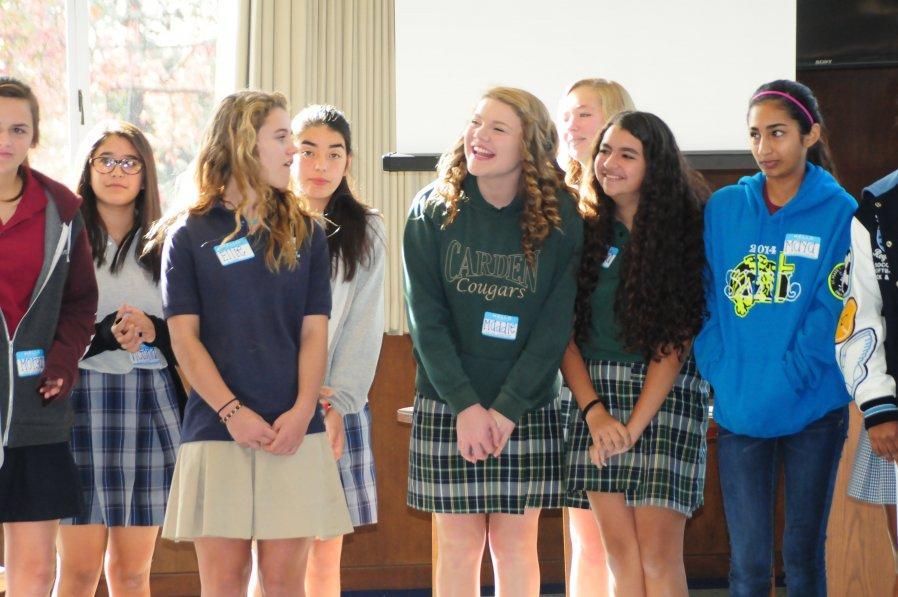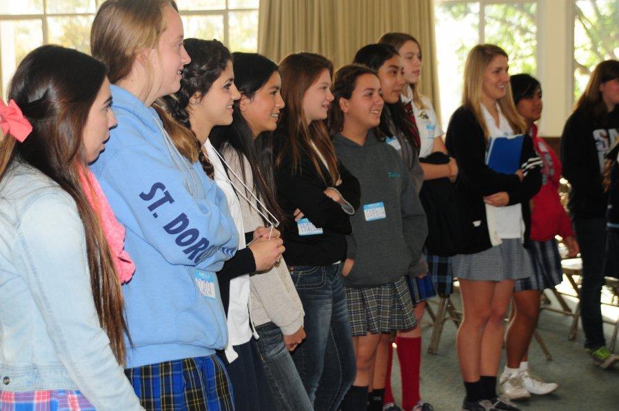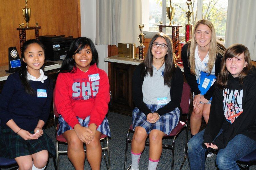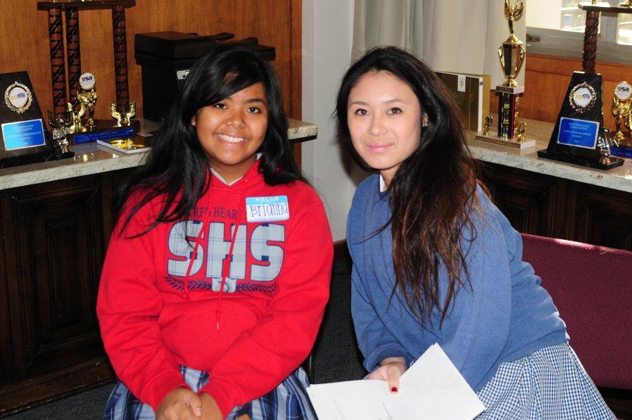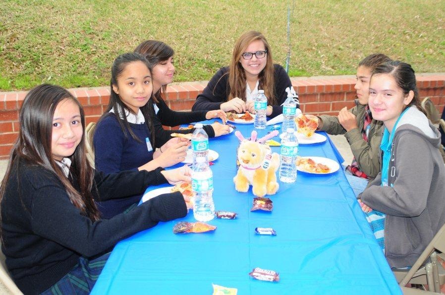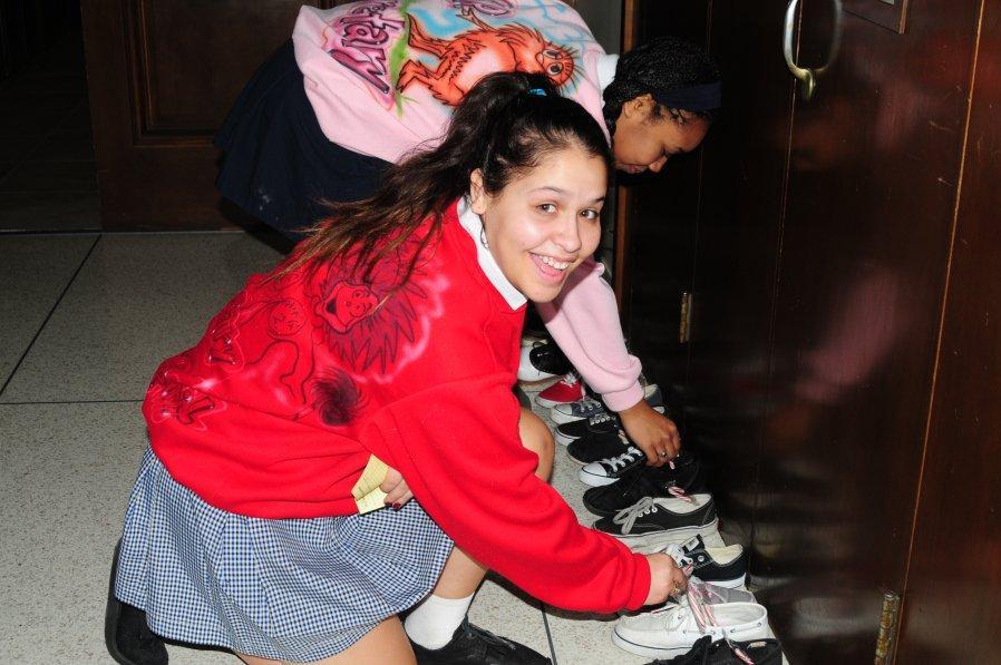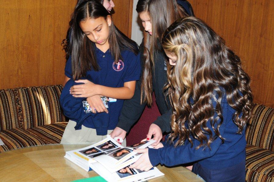 On Friday, December 6 sixty-one students from thirty-six different private and public junior highs attended a St. Lucy’s Morning Shadow Visit. The 8th graders were hosted by seven seniors and eight juniors. They received a tour of the campus, met teachers and students, and enjoyed a delicious pizza lunch. We also celebrated the Feast of St. Nicolas. The girls were told to leave one shoe in the hallway during introductions and good ole St. Nic left candy canes in their shoes.