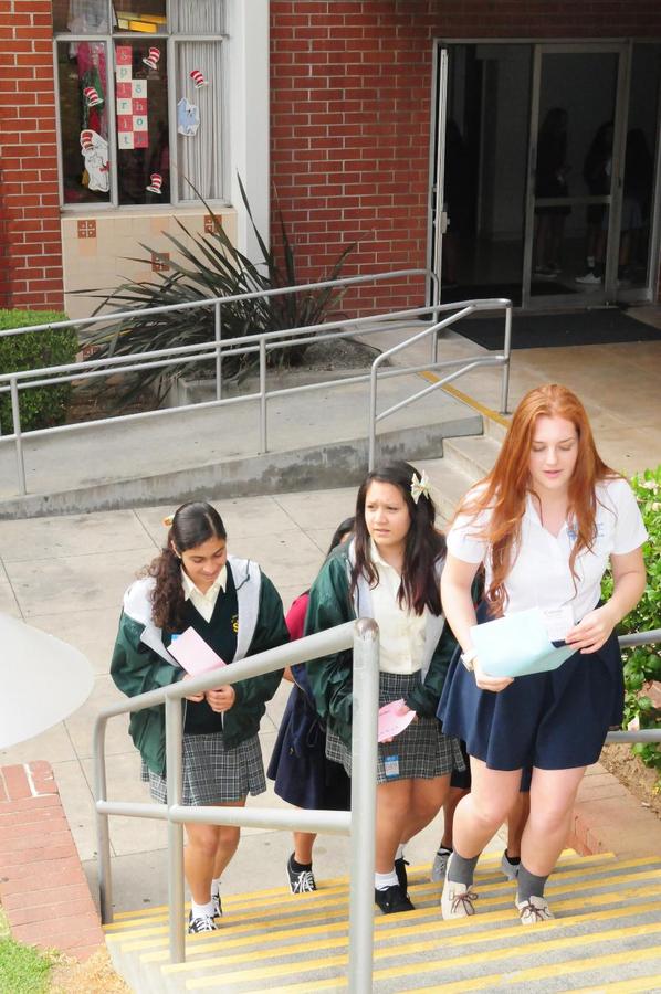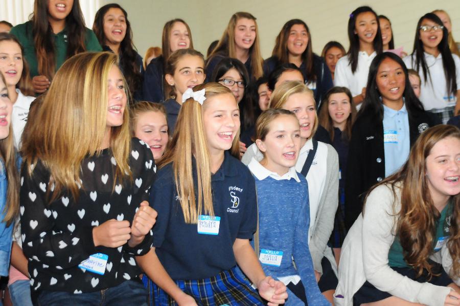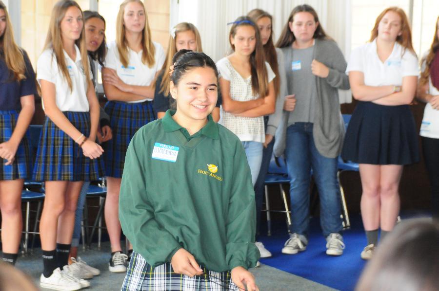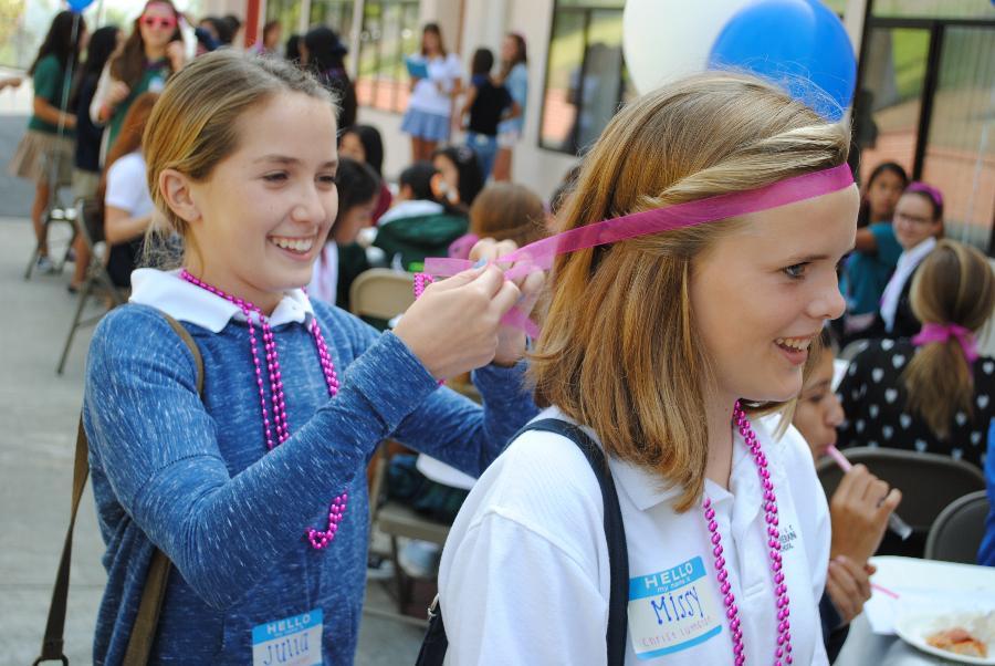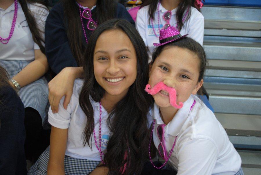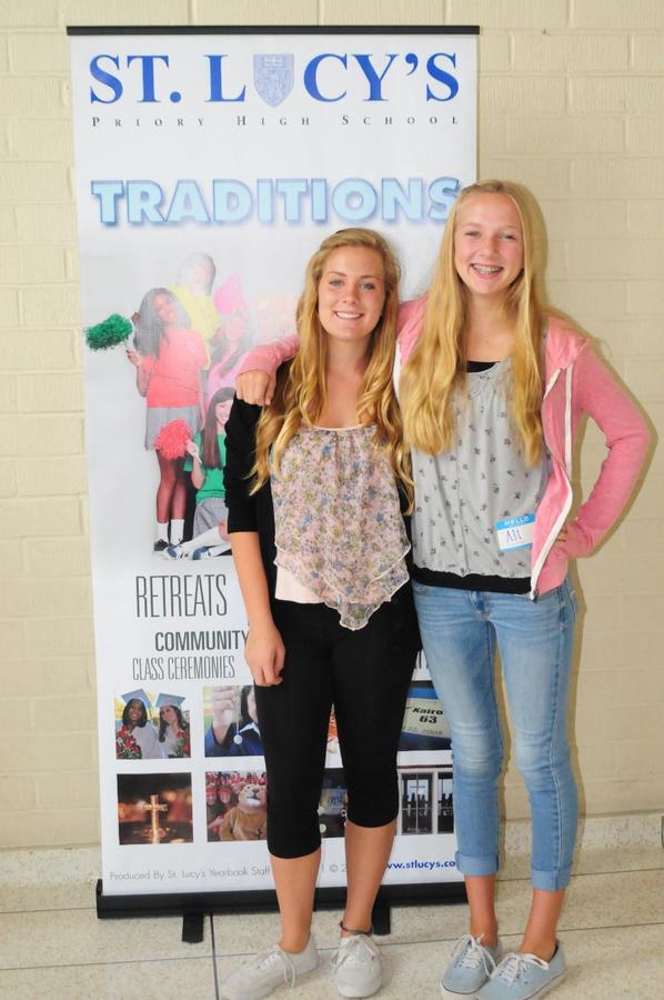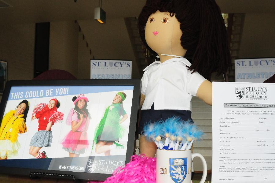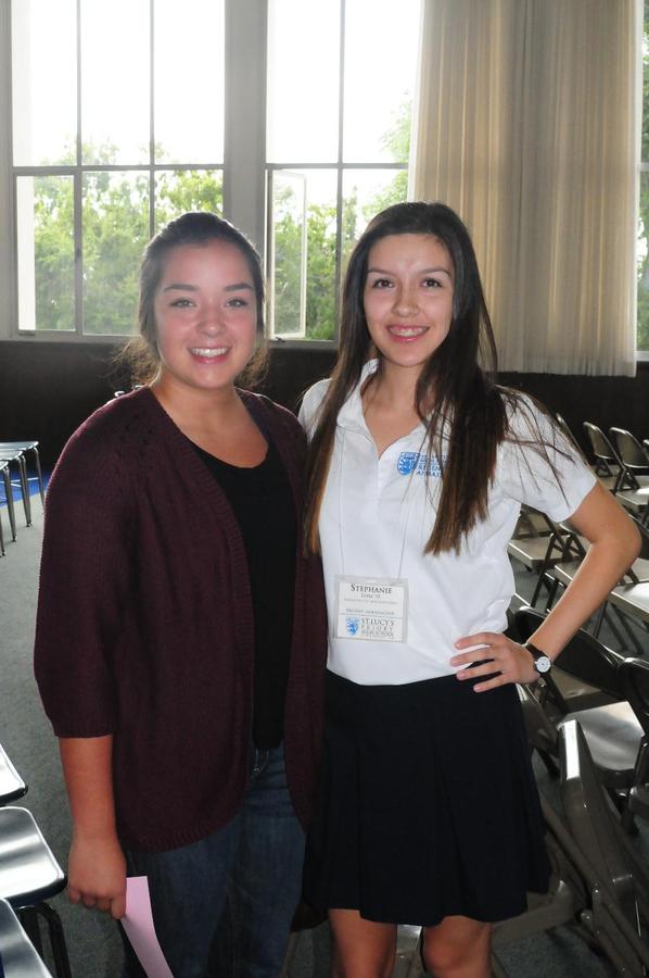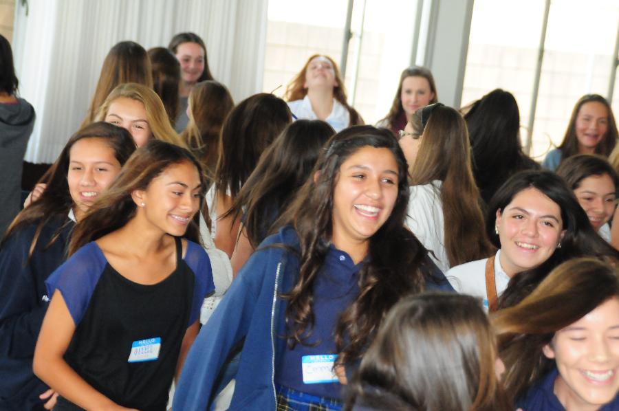 On Wednesday, October 2, 2013, eighty-eight 8th grade girls from twenty-one different private and public junior highs attended a St. Lucy’s Shadow Visit. The 8th graders were hosted by eight seniors and nine juniors. They received a tour of the campus, met teachers and students, participated in a school rally, and enjoyed a delicious pizza lunch. The visit concluded in the Regent Resource Center with a Parent Q & A Session where families met the Administration, Dean of Curriculum, Athletic Director, and the Director of Public Relations and Enrollment. This was the largest Shadow Visit to date! One eighth grader shared, “I had an amazing time. It was the best day so far in 8th grade!”