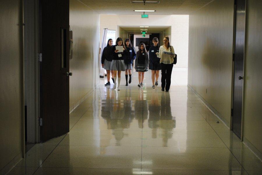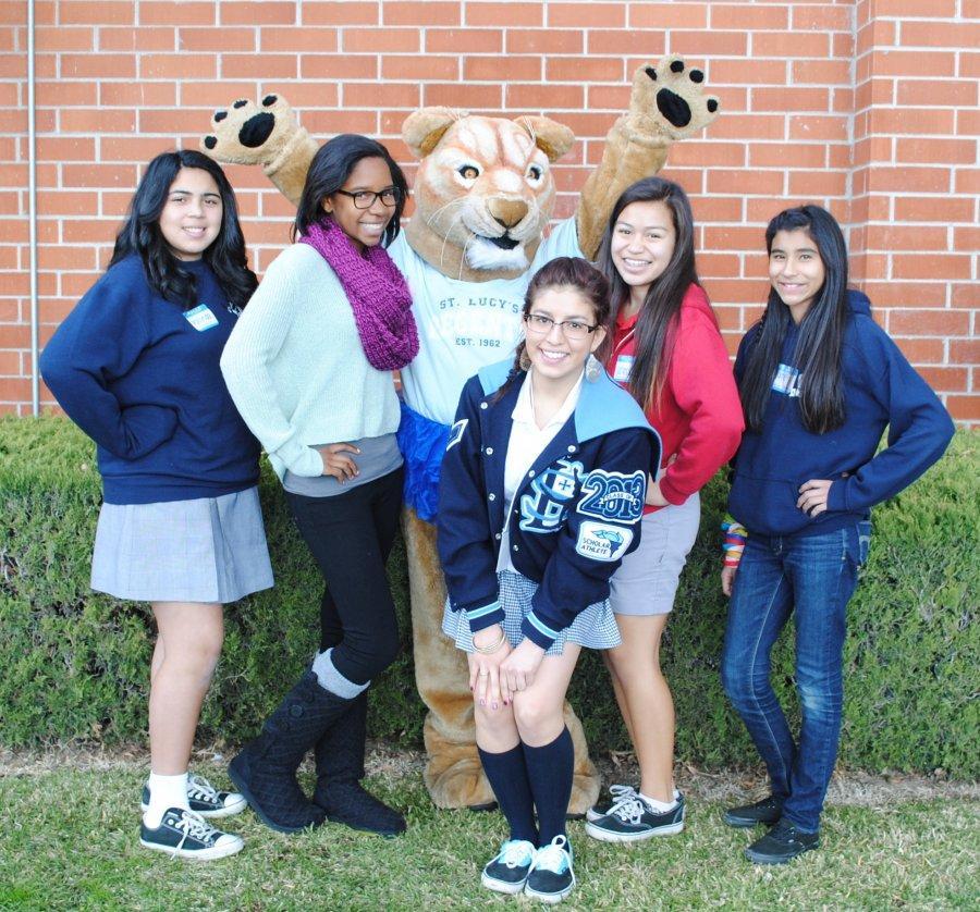On Thursday, January 10, 2013, twenty five students from sixteen different private and public junior highs attended a St. Lucy’s Morning Shadow Visit. The 8th graders were hosted by four seniors (Rebecca Frankeburger, Zayi Reyes, Brittney Seman, and Heather Seman) and four juniors (Gabriella Butler and Tayler RV). They received a tour of the campus, met teachers and students, and enjoyed a delicious pizza lunch. This concludes the formal 8th grade Shadow Visits for the current school year. A total of 232 prospective students have attended one of the six visits this year!