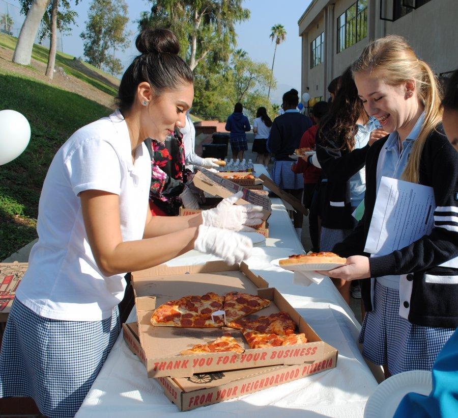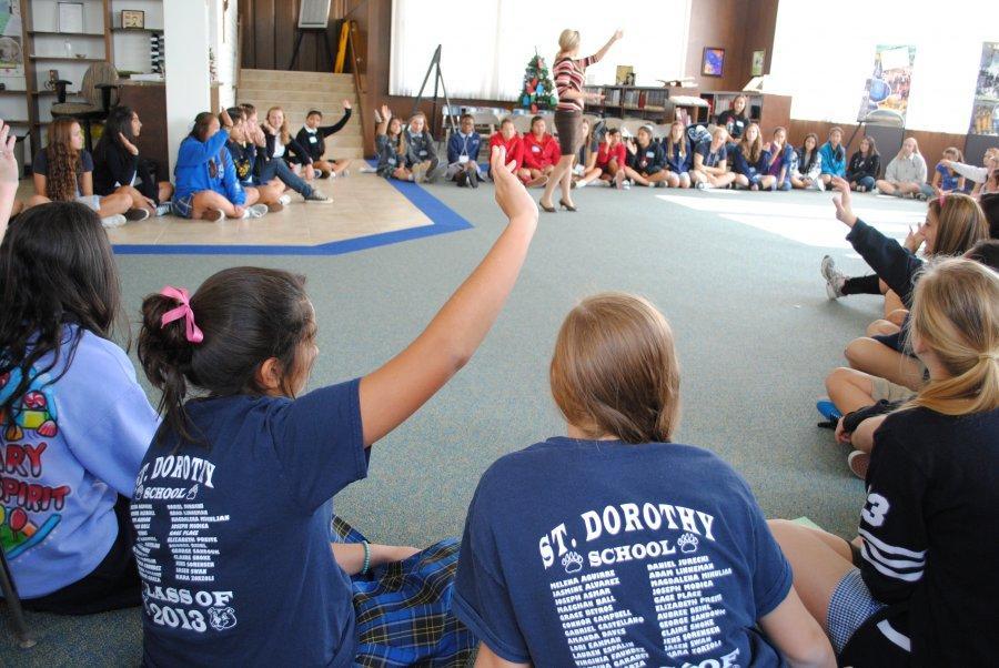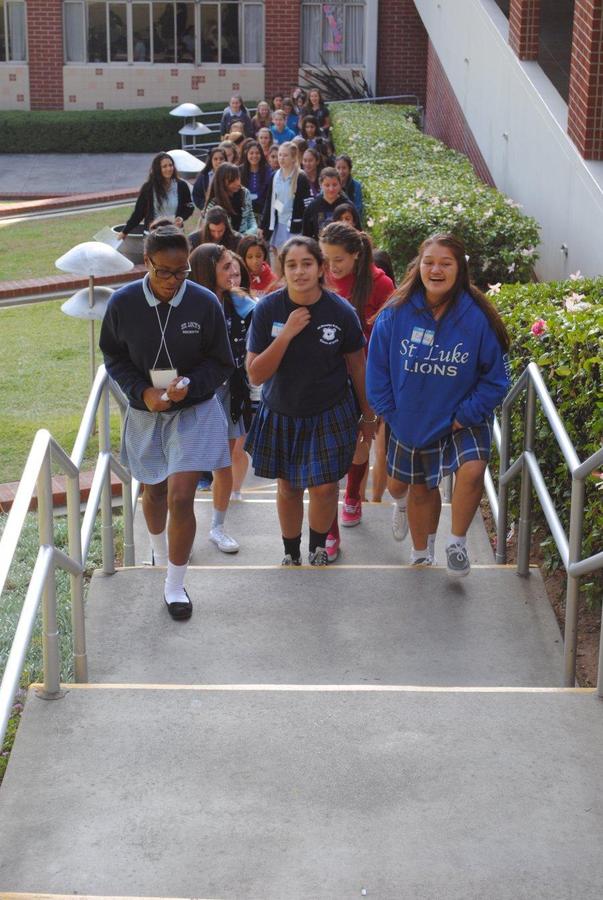 On Wednesday, November 28, 2012, forty-two students from twenty different private and public junior highs attended a St. Lucy’s Afternoon Shadow Visit. The 8th graders were hosted by seven seniors (Makenna Baugus, Gisele Bitar, Stephanie Malki, Julia Paniagua, Zayi Reyes, Camille Schwan, and Heather Seman) and seven juniors (Anneliese Bals, Ifeoma Ekeomodi, Alicia Esquivel, Nicole Lopez, Tayler RV, Cassidy San Filippo, and Alexis Tetreault). They received a tour of the campus, met teachers and students, and enjoyed a delicious pizza lunch. We were also excited to learn that four of these eighth graders’ parents are St. Lucy’s alumnae!