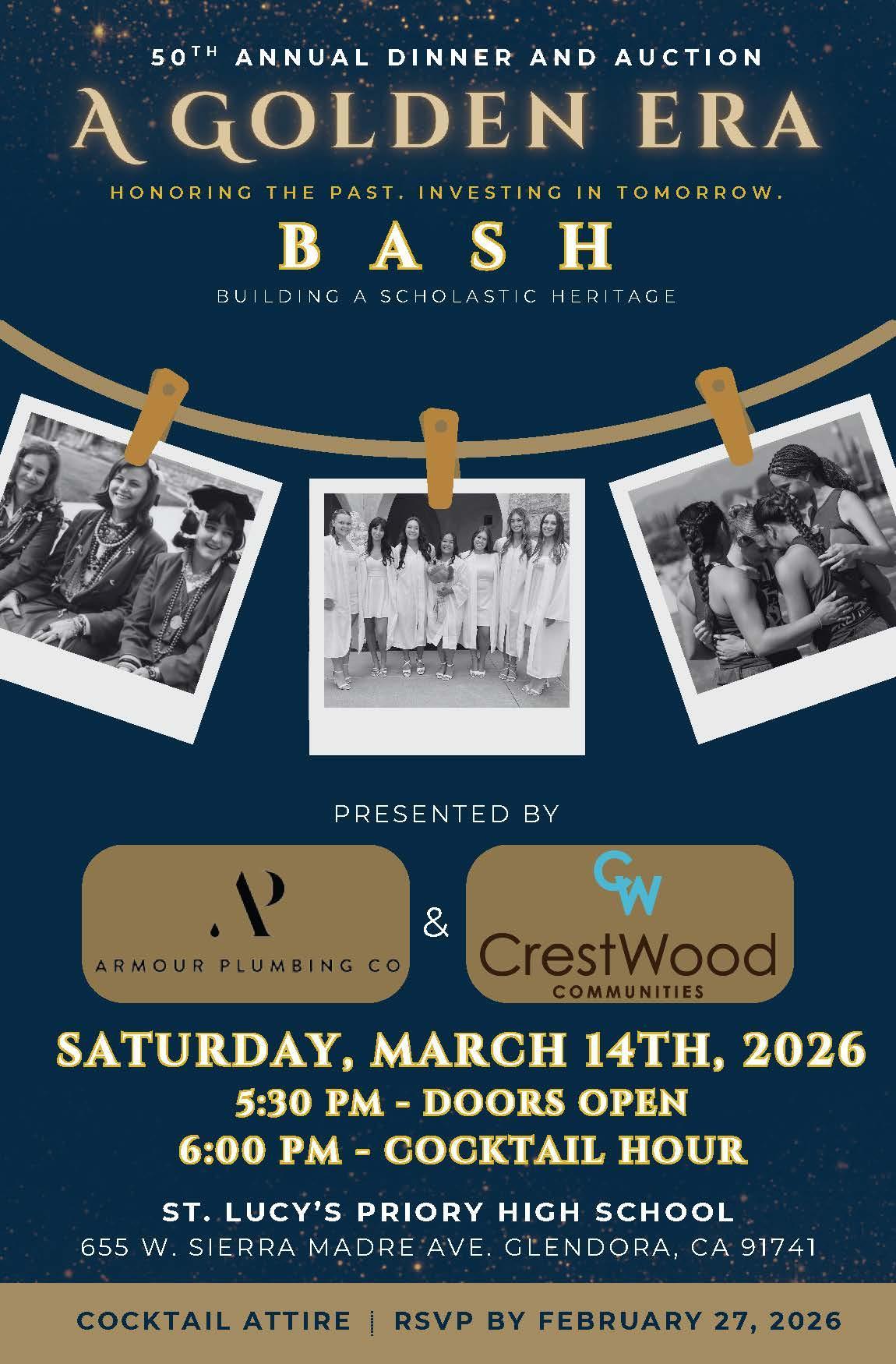 BASH is St. Lucy’s most important fundraising event of the year and your participation truly matters. This evening brings together our community with one shared purpose: supporting the students and programs that make a St. Lucy’s education exceptional. When you purchase a ticket, you are not simply attending an event. You are making a direct investment in the future of our school and the young women it serves.